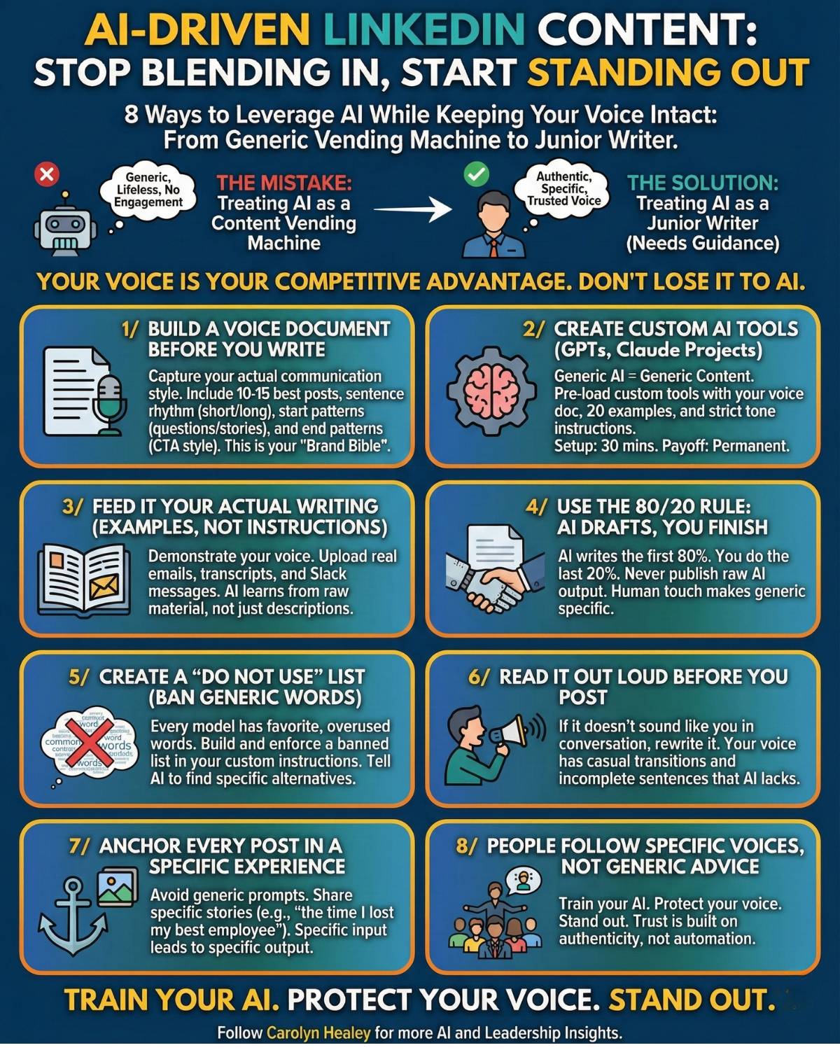 Specific stories + human finishing touches turn AI drafts into standout posts people actually follow.